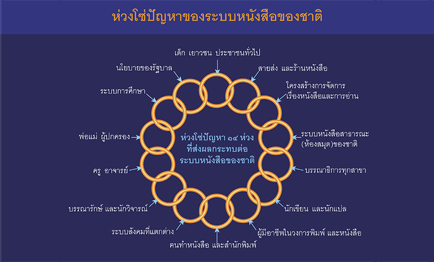 การส่งเสริมการอ่านและการเรียนรู้ จำเป็นต้องพัฒนาระบบหนังสือของประเทศโดยรวม อย่างพร้อมเพรียงเพราะปัญหาเรื่องการอ่านการเรียนรู้ และระบบหนังสือ เป็นสิ่งเกี่ยวข้องกัน จะแยกแก้ปัญหาทีละจุดไม่ได้ ไม่ว่าจะในระยะเร่งด่วน หรือระยะยาว ดังนั้น จึงต้องพิจารณาแก้ปัญหาองค์กรและบุคลากร ตลอดจนระบบสำคัญ